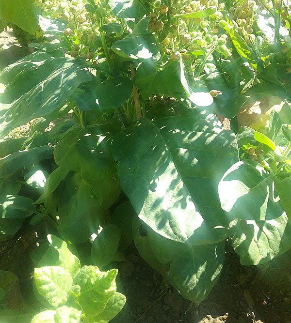 Hasenkeyf is a Rustica strain developed in Russia. It has the classic plant form of most Rustica tobaccos growing to a height of about 30 inches in height with side branches. It produces 10 to 12 leaves averaging 8 inches in width and 12 inches in length on the main stalk, with additional smaller leaves on the side stalks. Hasenkeyf reaches bloom fairly early at approximately 35 to 40 days with the leaves starting to ripen about two weeks later. It is a good choice for shorter growing seasons, or for an earlier harvest.