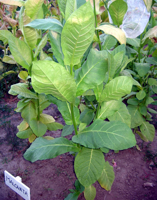 Malovata 94 is a Moldovan type tobacco grown in Romania on the sandy soils located in the Romanian Black Sea area.. It is a local drought resistant variety with good quality and yields an aromatic smoke. It can grow to a height of 4 1/2 to 6 feet with 12 to 16 leaves widely spaced on the stalk. Leaves average 8 to 10 inches in width and 16 inches in length. It matures and ripens early with the leaf becoming a light green when ripe. It is usually sun cured and air dried, and is good for pipe and cigarette blends. Nicotine content is from 1% to 1.5%