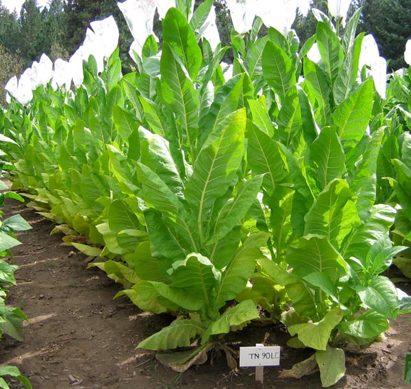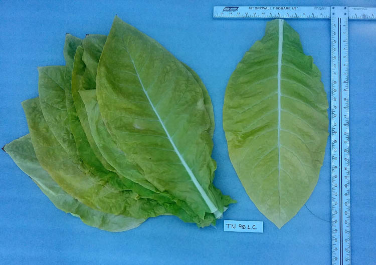 TN 90 LC is a low converter strain of TN 90. Our seed is now certified LC. What are low converters? Tobacco plants produce many different alkaloids. Two of the most commonly produced alkaloids are nicotine and nornicotine, which are closely chemically related. During the curing and drying process, some nicotine chemically converts to nornicotine. The heat of combustion can then convert some of the nornicotine into TSNA's, or Tobacco-specific nitrosamines. Tobacco-specific nitrosamines comprise one of the most important groups of carcinogens in tobacco products, particularly cigarettes and American style fermented dipping snuff. Over the past several decades, selective breeding has reduced the nornicotine content in most modern day varieties burley and dark tobacco types. With the goal of further reducing TNSA's, research is now focused on lowering the amount of nicotine which converts to nornicotine during the curing process. To qualify as a LC tobacco, the conversion rate must be 3% or lower. The conversion rate of nicotine to nornicotine is controlled by particular genes in the plant, but is not consistent from plant to plant, and declines quickly in successive generations. To be classified as an F1 generation LC tobacco, a leaf sample must be take from each plant during each growing season and it's conversion rate measure. Only seeds from plants with less than a 3% conversation rate can qualify as certified F1 generation LC seed. About TN 90: |