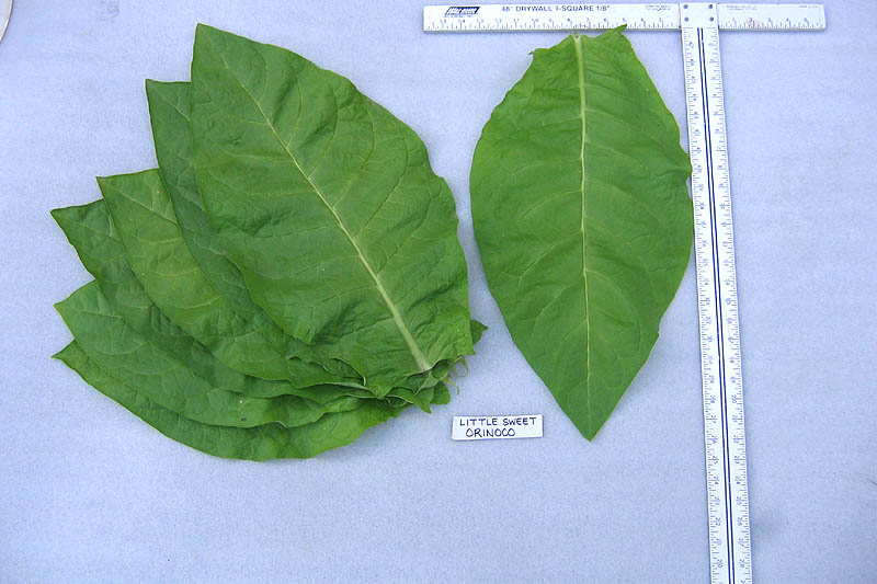 Little Sweet Orinoco is a bright leaf Orinoco strain. It grows to a height of 4 1/2" to 5" to the flower head. The leaves average 11" to 13" in width and 19: to 21" in length.  Little Sweet Orinoco produces an average of  14 to 16 leaves per plant and matures and reaches bloom in 65 days.