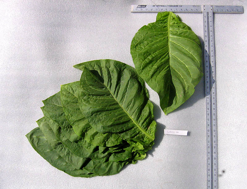 Corojo 99 is a hybrid decedent of the original El Corojo seed from Cuba in the 1930's. It is sometimes called a sister of Habano 2000. Corojo 99 is larger and much more disease resistant than the original strain, but still produces a dark brown silky grained wrapper with with a rich spicy cedar aroma. It is one of a few wrappers that does well in both sun or shade. The plants grow to 7-8 feet in height and produce 18 - 20 leaves on average. Maturity is 75 - 80 days from planting. |
