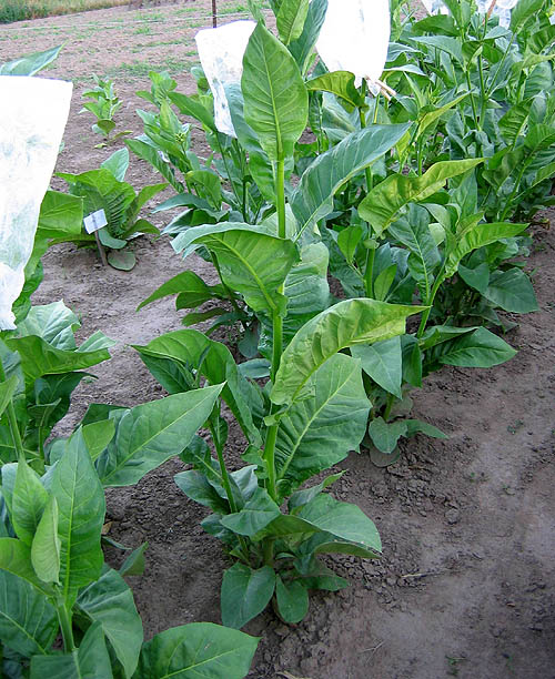 Iztepeque 589, also called Costa Rica 589, is a primitive Costa Rican cigar type. The original seed stock was acquired by the USDA in 1936. It's growth habit and plant form resemble that of Turkish varieties such as Black Sea Samsun. The leaves are a medium green and have a glossy appearance when mature. The leaves air cure to a light brown. Well aged leaf is flavorful, and has a ginger like spiciness to it. Iztepeque is excellent as a pipe tobacco or a cigar filler. PI 114370 |