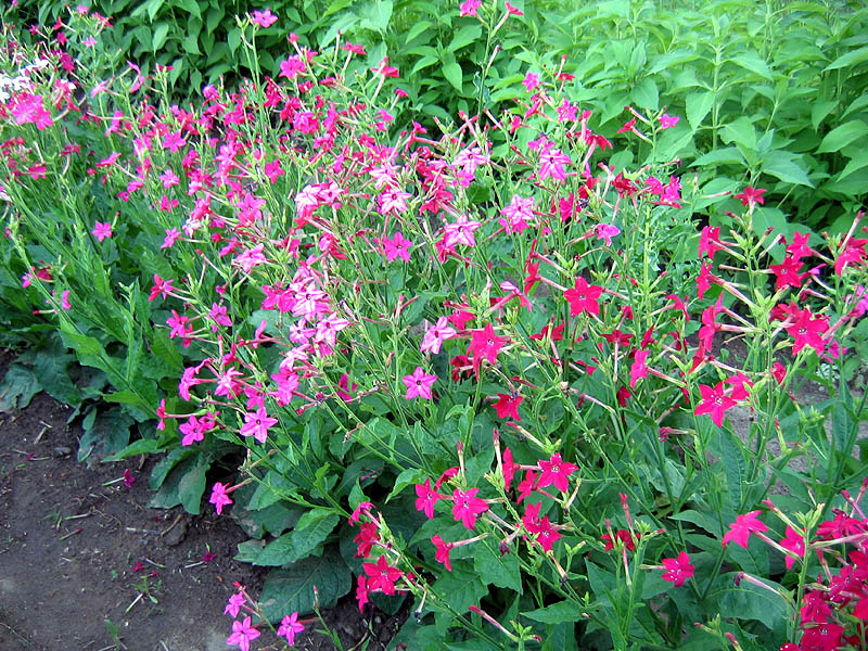 Crimson Bedder is a flowering nicotiana in the Alata family. This ornamental begins blooming just few weeks after planting, and continues to grow and bloom all summer long. The long trumpet shaped flowers and their crimson red color produce a striking appearance against the dark green foliage. It grows to about 2 1/2 to 3 feet in height, producing many branches as it grows with more flowers on each branch. Crimson Bedder is an excellent addition to the flower garden, and it makes a good background plant for other flowers. |