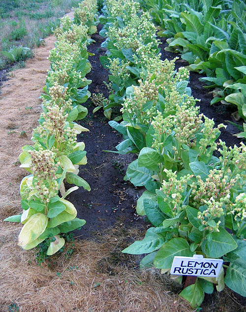 | Limonka Rustica originated in Eastern Europe and is often called Lemon Rustica. The plants reach about 30 inches in height on average reaching maturity and flowering in 35-40 days. Unlike most other Rustica strains, the leaves of Limonka ripen easily and turn yellow on the plants. This makes it very easy to cure and dry to a bright lemon yellow color. Other Rustica strains are often difficult to cure and dry a dull brown compared to this "Lemon Rustica" strain. The leaves average 7-9 inches in width and 8-10 inches long. The nicotine content of Limonka can range from 6-9% depending on growing conditions and fertilization. . |