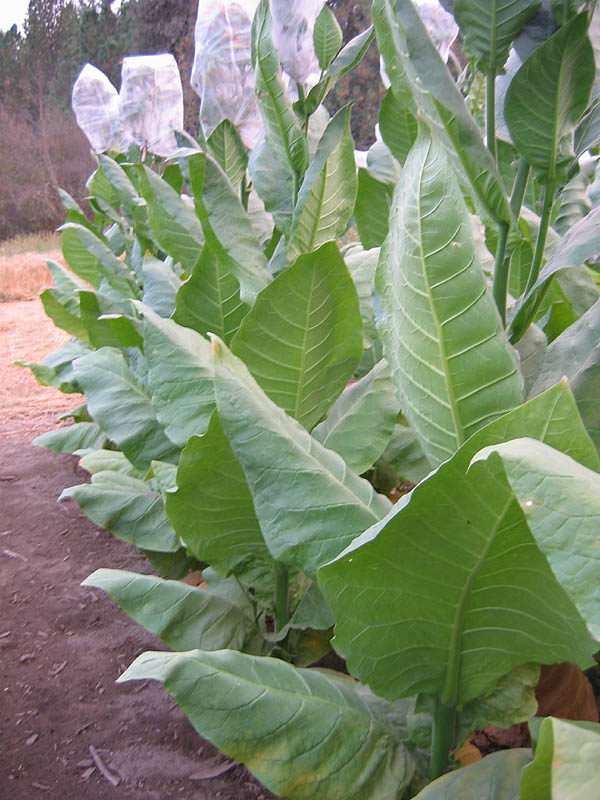 | Nostrano del Brenta is a remarkable heirloom cigar wrapper variety from the Brenta Valley of Northern Italy. The plant is a vigorous grower that reaches a height of 5 feet to the crows foot. It produces large leaves 24 inches long and 18-20 inches wide, with an average of 18 leaves per plant. Maturity is reached in 60-65 days. Often color curing to deep maduro or oscuro wrappers, both with a mild taste and aroma. There is an Italian commercial cigar named, "Nostrano del Brenta," made from this variety. [Shortly after the first journey of Columbus to the New World (during the 1500s), tobacco was introduced into the Brenta River Valley of Italy. This variety may be considered a landrace that has been relatively stable for over 500 years.] There were 3 sub-varieties: Cuchetto, Avanino (little Havana) and Avanone (Campesano). All three of these were lost forever during the 1960s. Only a hybrid variant, known specifically as "Nostrano Gentile" is still cultivated. This is that variety. |