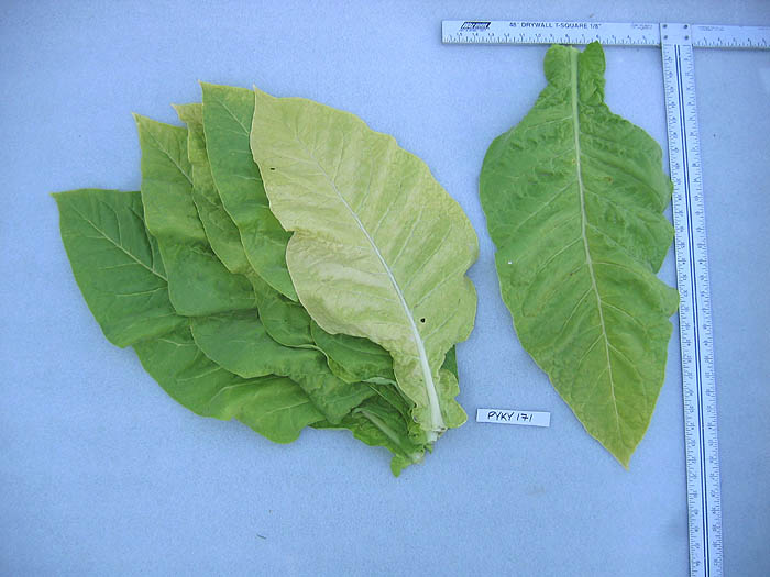 turn yellow about 4 weeks after topping, whereas, KY 171 stays green making