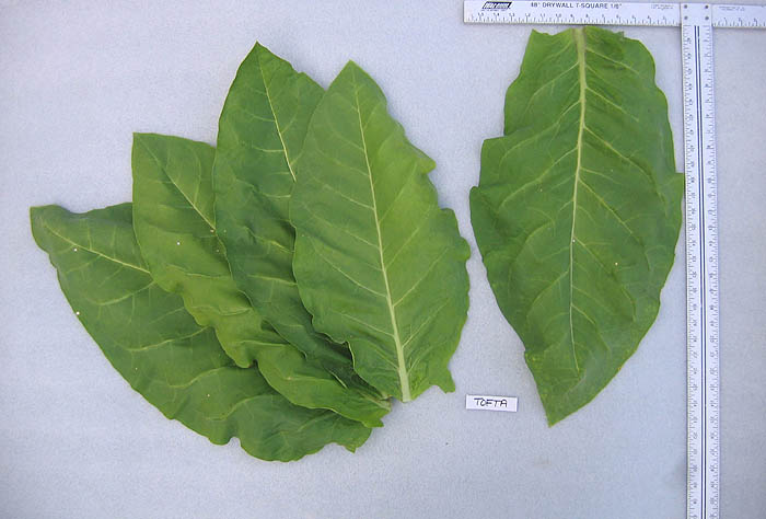| Tofta is a dark tobacco from Sweden that matures and ripens very early. The plant grow to 4 1/2 feet in height and flowers in 40-45 days. The plant produces 10-12 leaves that are ripe and harvestable in 55-60 days. The leaf averages 10-12 inches in width and 20-24 inches in length. Tofta is an excellent choice for growers with short growing seasons. |
